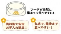 お皿の底面が丸くなっているので、フードがいつも中央に集まって食べやすい食器です。