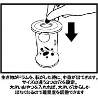 サイズの違う穴からおやつが出るように、ドラムをたくさん転がそう!