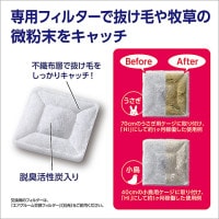 専用フィルターで抜け毛や牧草の微粉末をキャッチ!