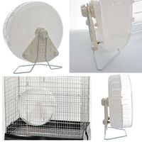 生き物の生活音や足音、遠心力による回転音、本品を固定したケージが揺れる事によっての音を抑えるものではありません。