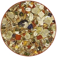 フラタキビ、カナリアシード、エンドウ豆フレーク、緑豆、大麦、オート麦、キヌア種子、トウモロコシ、大麦フレーク、オート麦の実、ニンジン、ゴマ(3%)、銀キビ、亜麻仁、赤キビ、牧草種子(1.7%)、バースニップ、ミールワーム(1%)、炭酸カルシウム、ビートルート、ノコギリソウ、タンポポの葉、アルファルファ、ピーマン、リンゴ、ローズヒップ、マルバの花、セモリナふすま(種子/小粒43.5%)