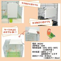 ケージ側面(外側)に設置するタイプの小鳥、小動物用ヒーターです。