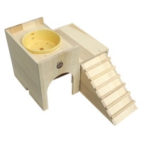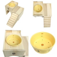 マルカン > 【28周年セール中】「うさちゃんの2階でごはん」と「うさぎのラウンド食器」のセット/ハウス 寝床 天然木 食器 エサ入れ 陶器 小動物 ウサギ モルモット チンチラ MARUKAN マルカン