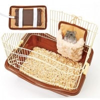 「ほっとハム暖 ポケハムベッド おふとん」は、ケージ側面に結んで縦型にも、チップの上に敷いておふとん型でもご利用いただけます。