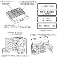 ●ロック付きで安心。エサ入れ、水入れ付き。