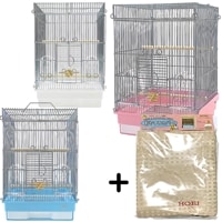 文鳥ちゃん、セキセイインコちゃんなど向きサイズの少し背高の手のり用小鳥カゴと、ケージと同メーカーの35手のりG専用布製カバーです。