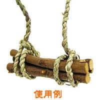 「Grass Toy ロープ 直径5mm×2M」などで束ねてケージにぶら下げたり固定したりするのもいいですね。 |