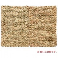 ゆったりサイズのわら製マットです。 ケージの底の敷いたり、コーナー部分に立てかけたりと、二つ折りなので、使い方いろいろ。 大きめケージで、ワイヤースノコでしたら、このマットを敷いて、快適なスペースを作ってあげるのもよいですね。 |  開いてワイドなLLサイズ(2つ折りになっております) 寝そべってリラックス! かじって、こわして、ストレス解消!! 100%天然素材。だから安心。 天然の草を編み上げた安全、快適さわやかマットです。 (針金は一切使用しておりません) |